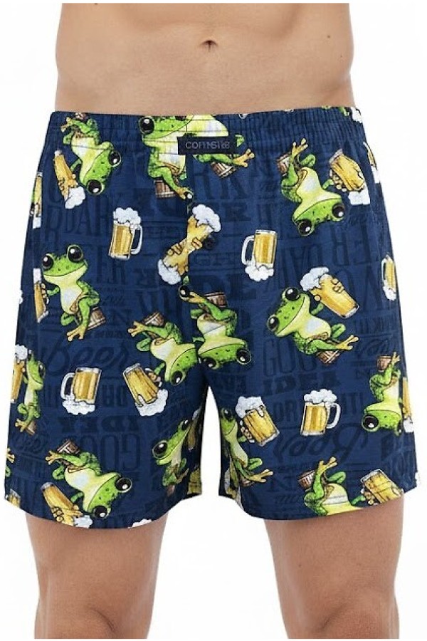 Boxeri pentru barbati realizati din bumbac de inalta calitate, conceputi pentru barbatii care pretuiesc confortul si comoditatea. Boxerii au croiala lejera, prezinta model amuzant cu broscoi care beau bere la halba, sunt prevazuti cu talie elastica confortabila si se inchid in zona slitului cu un nasture. O propunere excelenta pentru a face un cadou plin de personalitate si stil barbatului iubit.