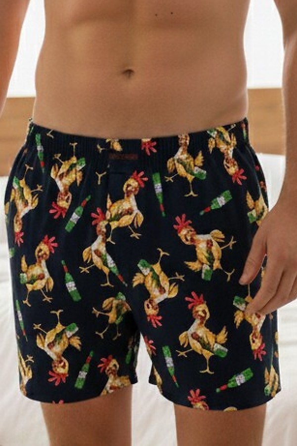 Boxeri pentru barbati realizati din bumbac de inalta calitate, conceputi pentru barbatii care pretuiesc confortul si comoditatea. Boxerii au croiala lejera, prezinta model amuzant cu un pui ametit de la vin, sunt prevazuti cu talie elastica confortabila si se inchid in zona slitului cu un nasture. O propunere excelenta pentru a face un cadou plin de personalitate si stil barbatului iubit.