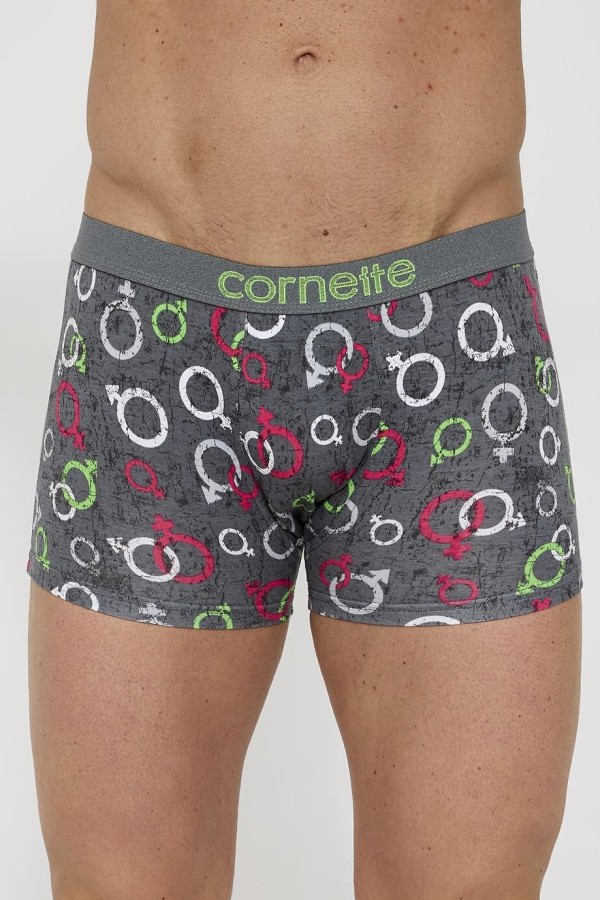 Boxeri pentru barbati din gama "High Emotion" realizati din bumbac de inalta calitate si elastan, conceputi pentru barbatii care pretuiesc confortul si comoditatea. Boxerii au talie elastica in nuanta contrastanta infrumusetata cu inscriptia usor iesita in relief "Cornette", cusaturi plate pentru un plus de confort si prezinta model deosebit cu simbolurile sexelor. O propunere excelenta pentru a face un cadou plin de personalitate si stil iubitului dumneavoastra.