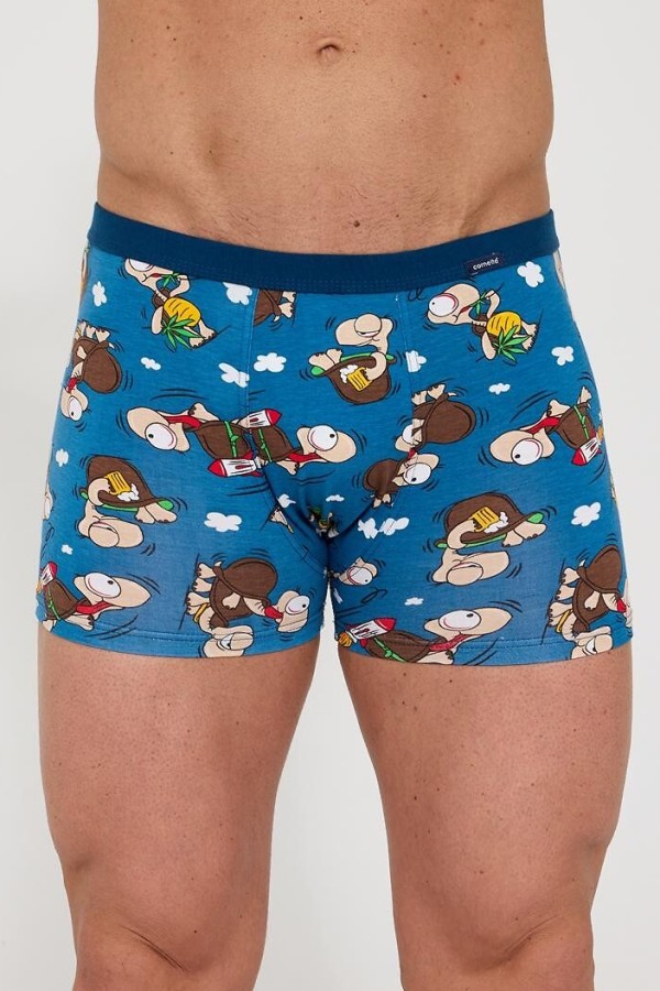 Boxeri pentru barbati din gama "Tattoo", extrem de confortabili, realizati din bumbac de inalta calitate si elastan, conceputi pentru barbatii care pretuiesc confortul si comoditatea. Boxerii au talie elastica confortabila in nuanta contrastanta si prezinta model amuzant cu o broasca testoasa. O propunere excelenta pentru a face un cadou plin de personalitate si stil barbatului iubit.