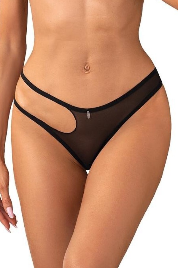 Simplu in forma, dar indraznet in expresie, chilotul tanga Saturis decupat in zona intima imbina minimalismul cu un design puternic si modern. Tulle-ul transparent dezvaluie delicat corpul, creand un efect senzual, in timp ce benzile elastice decorative si decupajul de pe sold adauga un accent rebel si provocator, perfect pentru femeile care ies din tipare. Materialul negru creeaza un contrast elegant cu bijuteria ornamentala argintie discreta, usor stralucitoare, rezultand un echilibru perfect intre senzualitate si geometrie. O piesa de lenjerie care indrazneste sa ofere mai mult decat optiunile clasice.