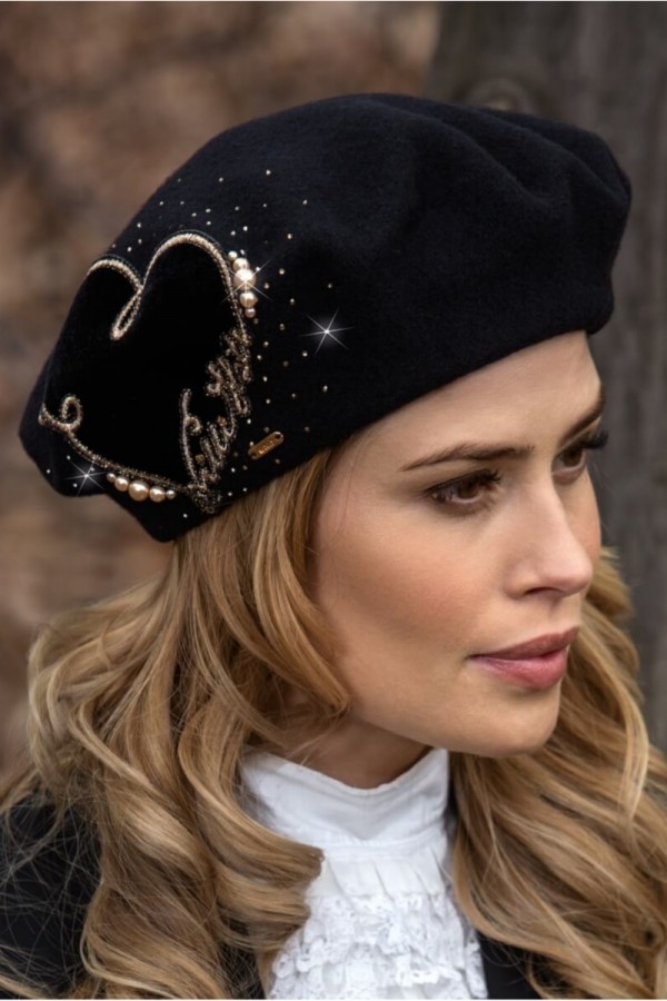Caciula de dama stil bereta WL10127 are aspect modern definit de elementele decorative originale. Broderia din fir lame in forma de inima, strasurile discrete si perlele integrate in partea dreapta sunt elementele care ofera aerul sofisticat acestei piese cu bun-gust. Datorita aspectului rafinat poate fi asociata la tinute casual, elegante sau office. Aduce un plus de eleganta tinerelor si un aer inocent doamnelor mature care o vor purta. Bereta WL10127 este accesoriul care atrage admiratie in orice context este purtata.
