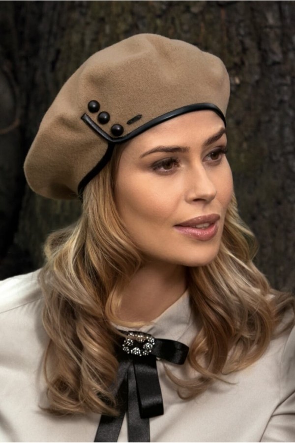 Caciula de dama stil bereta WL10655 este un accesoriu deosebit care ofera un aer aparte oricarui outfit. Se remarca prin croi stil bereta clasica, imbogatit cu elemente decorative deosebite: nasturi si insertii din piele atent realizate. Modelul WL10655 are personalitate si poate fi purtat deopotriva de doamne de orice varsta cat si de tinere domnisoare. Se fixeaza perfect si completeaza o tinuta eleganta, casual sau office cu accente smart elegante. Asigura confort termic, protejand capul in zilele racoroase, si intregeste o garderoba bine gandita. Marginea inferioara a beretei este evidentiata de insertia de piele atent integrata. In partea dreapta se remarca finisajul perfect realizat si nasturii imbracati in piele care sporesc personalitatea caciulii. Intrucat este o piesa cu bun-gust, conceputa pentru a atrage aprecieri si admiratie, si materiale din care este confectionata sunt de calitate superioara. Tricotul de lana merinos folosit pentru caciula de dama stil bereta WL10655 este placut la atingere si nu creeaza disconfort la purtare.