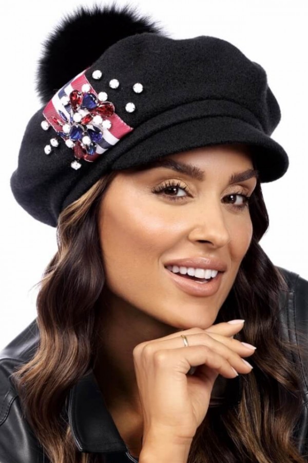Caciula de dama stil bereta cu cozoroc si pompon.