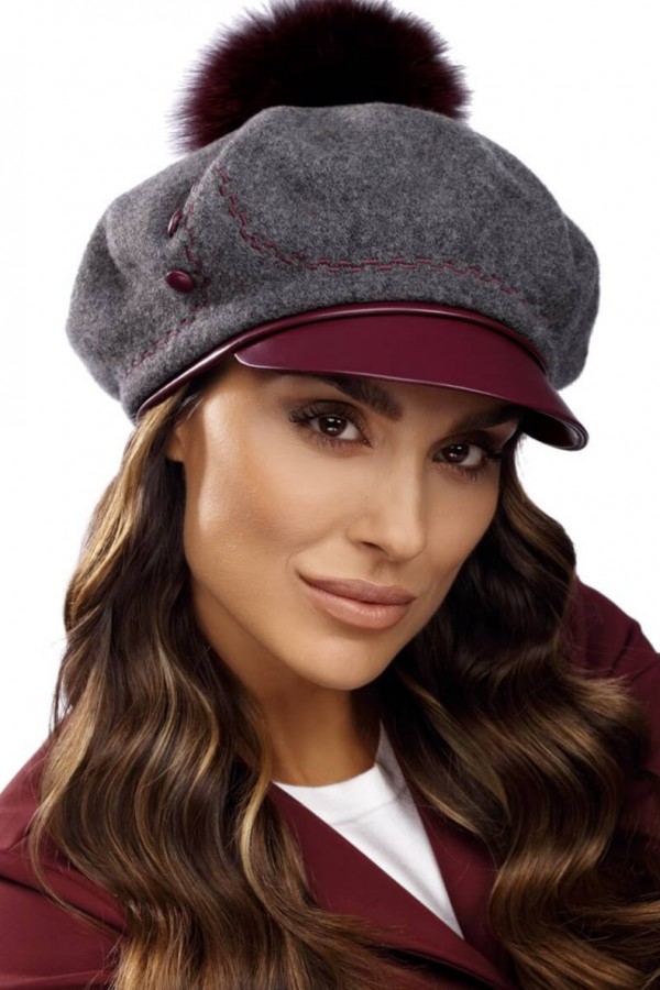 Caciula de dama stil bereta cu cozoroc si pompon.