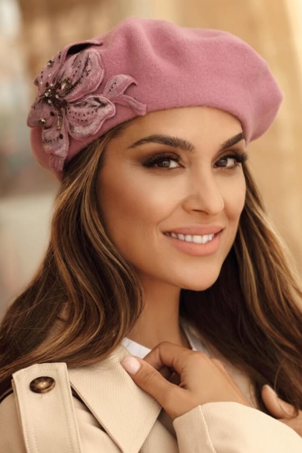 Caciula de dama tip bereta eleganta WL11154 are design cochet care ofera un aer romantic si accentueaza in mod placut trasaturile faciale. Modelul impresioneaza prin decorul rafinat de inspiratie florala pe care sunt aplicate strasuri discrete si mici cristale. Este o piesa rafinata care atrage prin delicatete, versatilitate si confort.