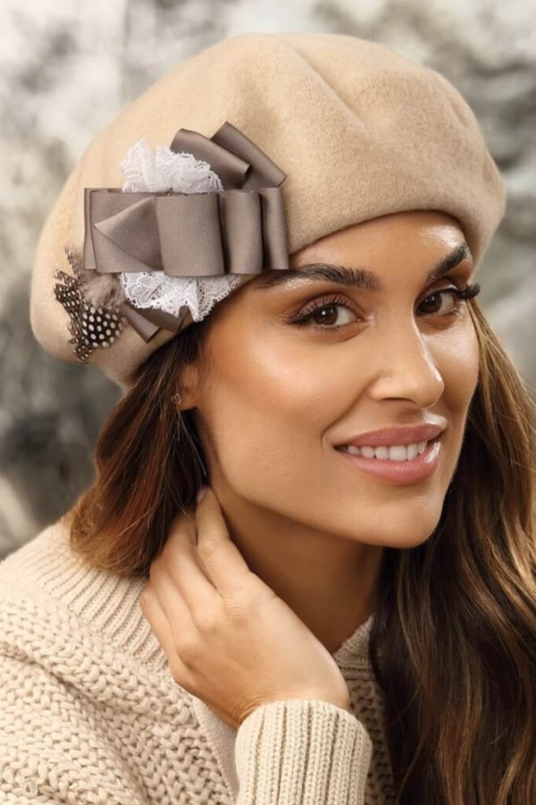 Caciula de dama tip bereta eleganta WL11272 este un model inedit care iti permite sa desavarsesti outfituri moderne de efect. Dispune de accesorizare bogata cu pene, dantela si fundite stilizate din benzi satinate care imprima o nota pretioasa. Este o piesa chic, rafinata care completeaza tinutele stilate si atrage admiratia celor din jur.