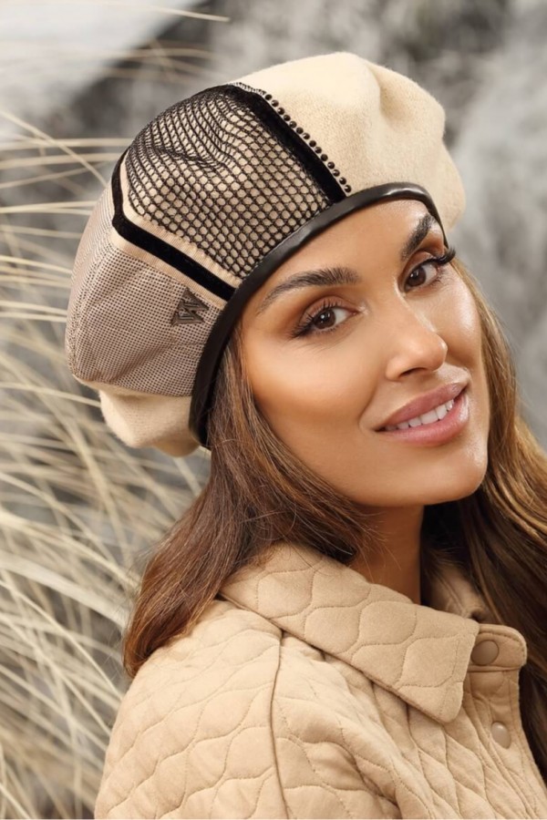 Caciula de dama tip bereta WL11430 este accesorizata cu plasa, strasuri si benzi din catifea ce ofera o nota eleganta. Modelul poate fi purtat atat de femei tinere, doamne mature, cat si de adolescente cochete. Croiul tip bereta scoate in evidenta personalitatile romantice. Marginea finisata cu piele ecologica ascunde snurul de ajustare. Este un model versatil care completeaza cu usurinta garderoba din sezonul rece.