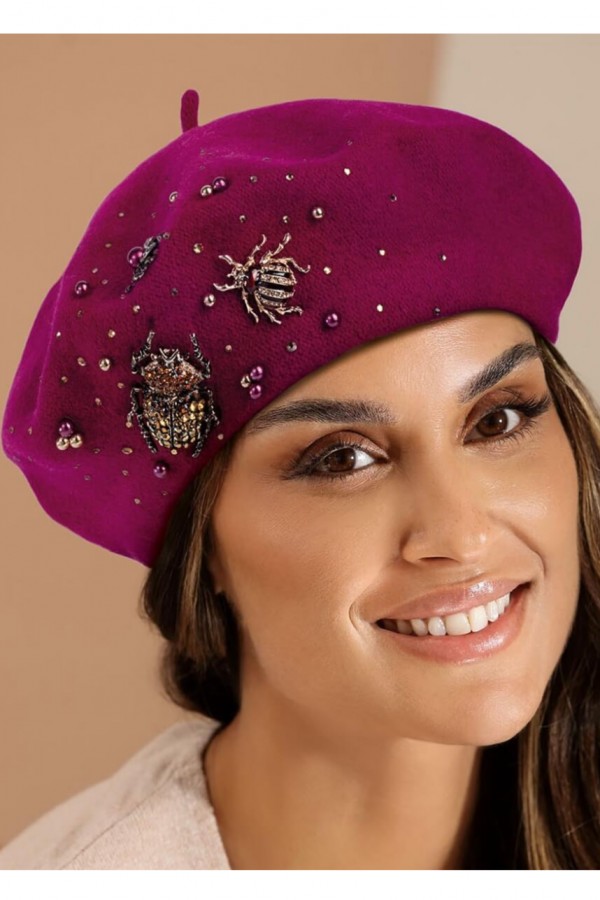 Croiul tip bereta iti va oferi un aer sofisticat si elegant. Caciula de dama tip bereta eleganta WL11454 atrage prin ansamblul decorativ compus din brose sub forma de insecte, margele si strasuri. Toate aceste elemente ii imprima o nota pretioasa si confera originalitate modelului. Insectele adauga o nota de natura si de grandoare piesei, iar strasurile si margelele adauga un plus de stralucire. Cu ajutorul acestei berete vei putea creea o multitudine de tinute elegante si sofisticate.