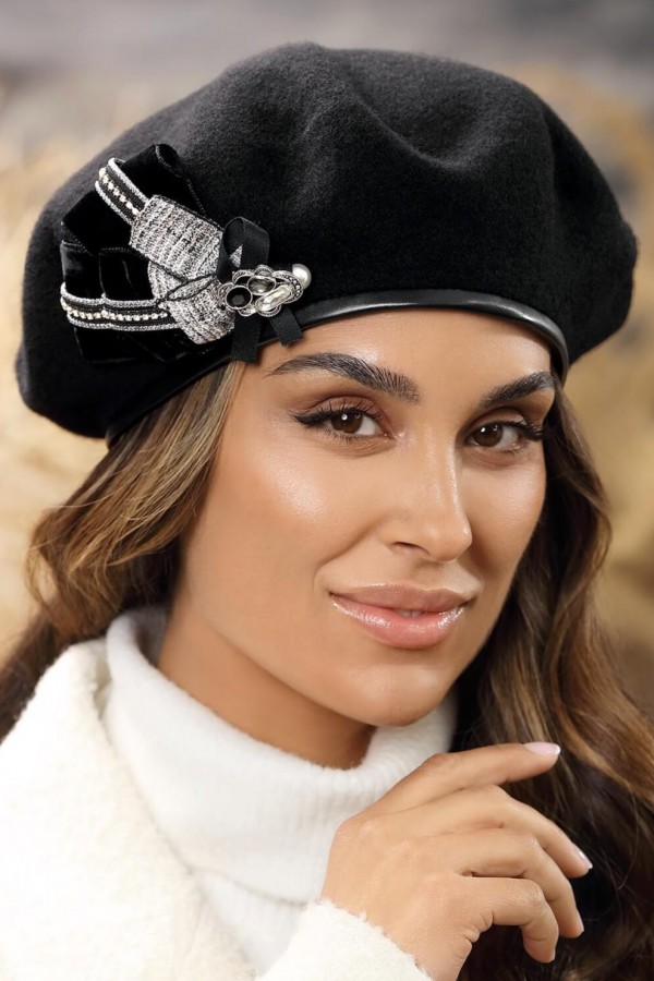 Caciula de dama tip bereta eleganta WL11459 reprezinta un accesoriu vestimentar cu adevarat deosebit, care aduce un plus de rafinament si romantism oricarei tinute. Se distinge prin designul elegant, imbogatit de croiul tip bereta, care scoate in evidenta frumusetea. Accesorizarea sofisticata este data de funditele stilizate, care sunt amplificate de strasuri, cristale, perle si brosa, adaugand un aer rafinament. Marginea este finisata cu piele ecologica, ascunzand un snur ce permite o ajustare usoara, asigurand astfel o potrivire perfecta.