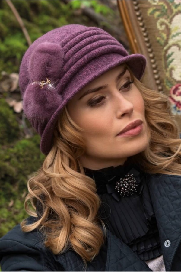 Caciula de dama stil palarie eleganta WL10668 este conceputa pentru femeile mature care apreciaza accesoriile clasice, pline de rafinament. Este o piesa deosebita care se remarca prin calitatea materialelor folosite, a designului elegant si a accesorizarii cu bun-gust. Este confectionata din tricot premium de lana merinos cu tuseu placut si care nu creeaza disconfort la purtare. Tricotul este realizat sub sigla Woolmark ce atesta calitatea superioara. Designul este unul dominat de eleganta; borul ingust ofera o nota clasica, un aer misterios si pune in valoare trasaturile faciale. Elementele care sporesc frumusetea si aspectul luxos al acestei piese sunt bulbii din blanita naturala de nurca aplicati in lateral. Pe ei este prinsa o brosa aurie cu strasuri ce irizeaza discret in razele de lumina. In partea centrala se remarca cele cinci cusaturi decorative sub forma unor inele in cascada ce ofera un aspect sofisticat. Caciula de dama stil palarie eleganta WL10668 se vrea a fi o alternativa la palariile si caciulille clasice. Imbina croiala practica a caciulilor cu eleganta imprimata de borul palariilor, rezultand astfel un model definit printr-o sobrietate plina de gust, perfect pentru tinutele de zi cu zi.
