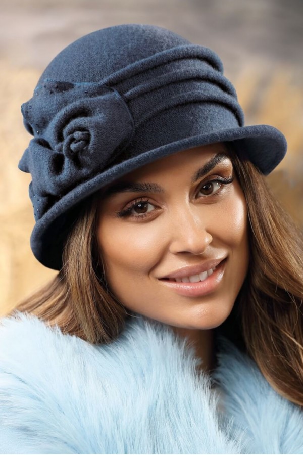 Caciula de dama stil palarie WL11362 are ansamblul decorativ completat cu strasuri asortate. Calota este incercuita cu mici pliuri decorative care imbogatesc aspectul premium. Borul mic evidentiaza placut trasaturile faciale. Este un model cochet care protejeaza capul in zilele racoroase de toamna-iarna. Este recomandata celor care apreciaza stilul elegant si isi doresc o alternativa la caciulile clasice.