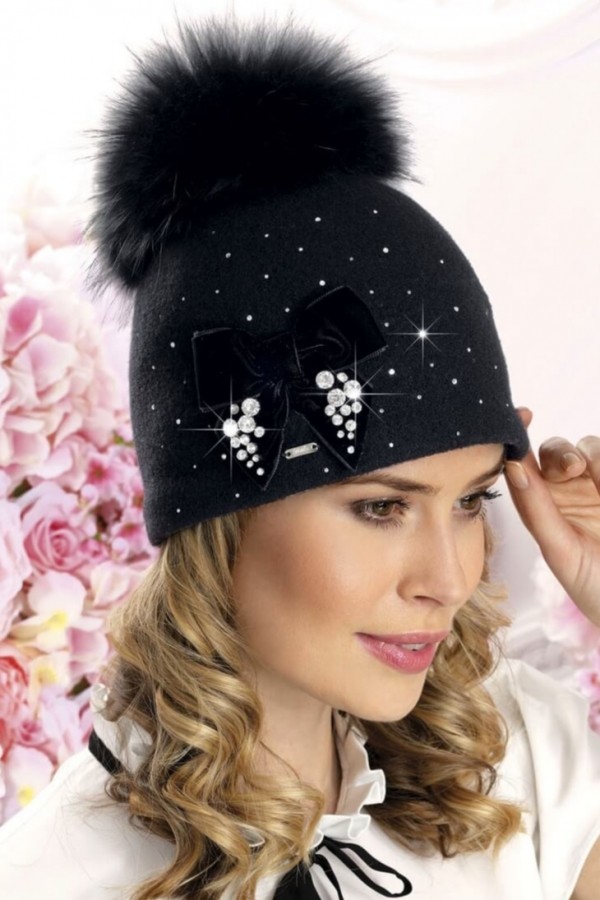 Caciula eleganta de dama cu pompon din blanita WL10108 este accesorizata cu numeroase strasuri care stralucesc in razele de lumina, cristale pretioase care ofera aspect premium si o fundita stilizata din catifea. Detaliul care face din acest model un accesoriu atat de apreciat este pomponul realizat din blanita naturala care este si detasabil pentru a ajuta la o curatare mai rapida.