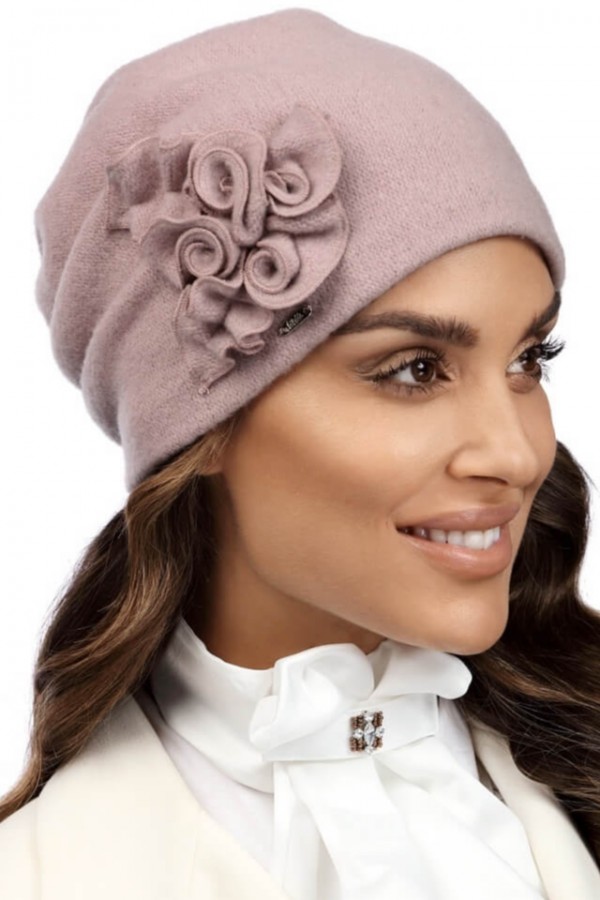 Caciula de dama WL10938 ofera un aer sofisticat tinutelor pe care le completeaza. Designul modern este accentuat de pliurile decorative prinse la spate. Modelul este accesorizat in lateral cu o aplicatie florala stilizata din tricot. Este o piesa indrazneata, rafinata si atrage privirile admirative ale celor din jur.