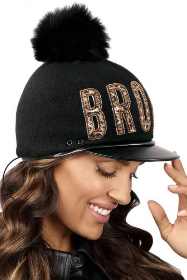 Cozorocul este imbracat cu piele ecologica, accentuand personalitatea puternica a purtatoarei si oferind un plus de eleganta. In partea din fata, se remarca prin inscriptia BROWN realizata cu un design animal print si strasuri asortate, care atrag privirile si completeaza perfect aspectul sofisticat al accesoriului. Pomponul din blanita naturala este detasabil, fapt care faciliteaza procesul de curatare si mentinerea aspectului impecabil.