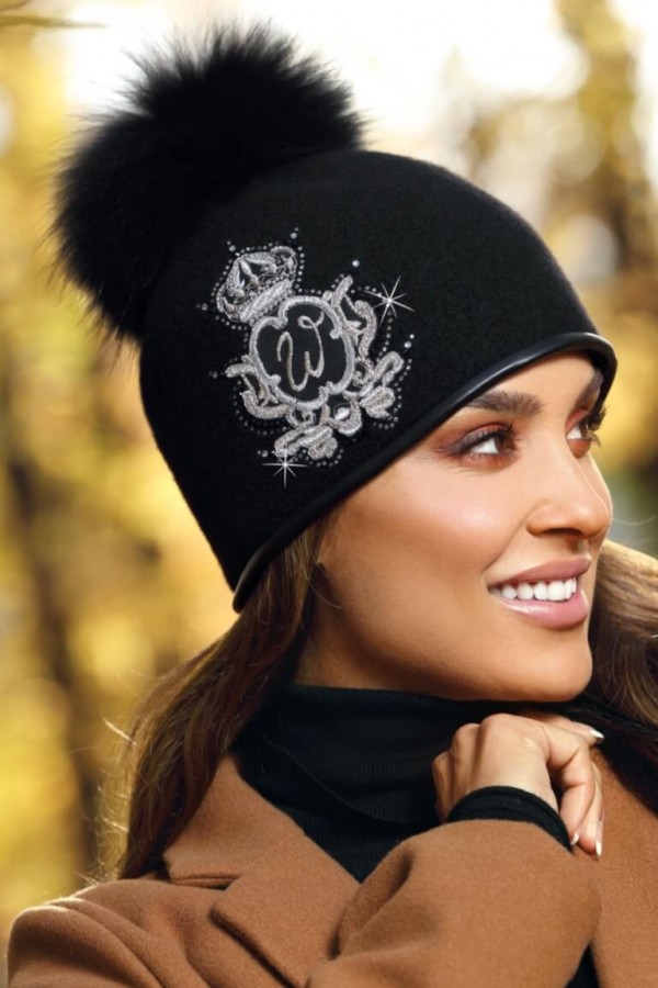 Caciula de dama cu pompon din blanita.