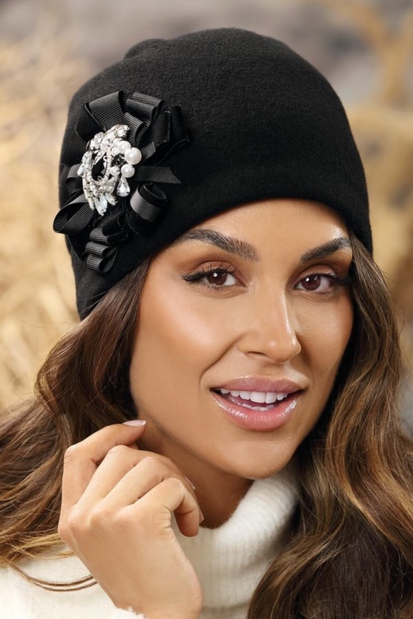 Caciula eleganta de dama WL11313 prezinta pliuri decorative prinse la spate, iar in lateral este decorata cu fundite stilizate in mijlocul carora se afla o brosa fermecatoare completata cu perle, cristale si strasuri ce irizeaza in razele de lumina. Este un model premium care imprima eleganta si ofera un plus de feminitate tinutelor pe care le completeaza. Atrage privirile admirative ale celor din jur si iti permite sa afisezi un aer distins in orice context o vei purta.