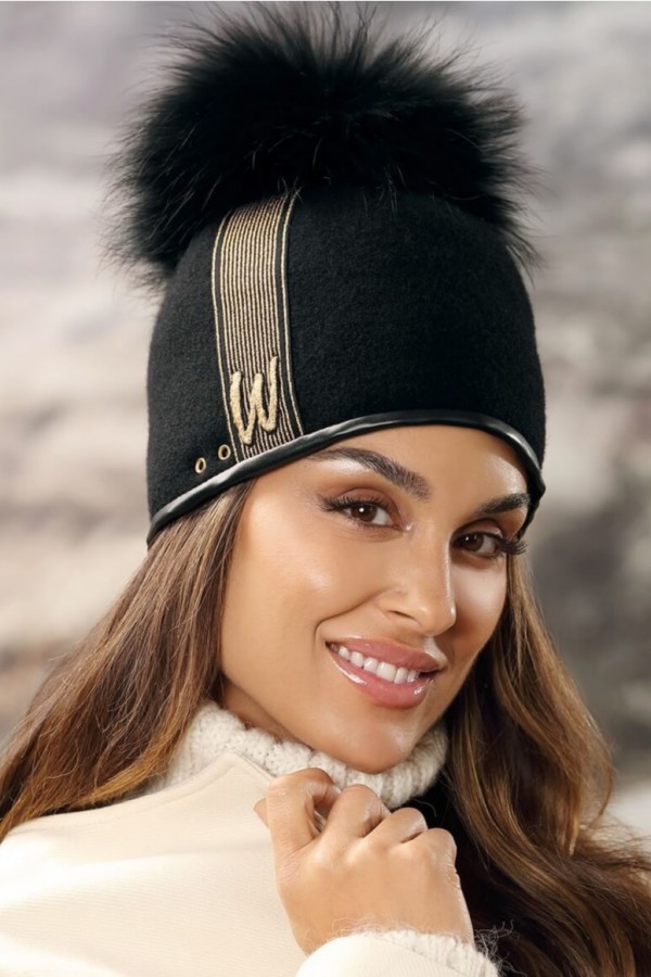 Caciula de dama cu pompon din blanita WL11327 are croi clasic si design tineresc. Modelul cucereste prin pomponului supradimensionat realizat din blanita naturala. Acesta este detasabil pentru a ajuta la o curatare mai rapida. Marginea finisata cu piele ecologica ascunde snurul care permite intr-o mica masura ajustarea. Piesa este accesorizata in lateral cu elemente brodate cu fir lame.