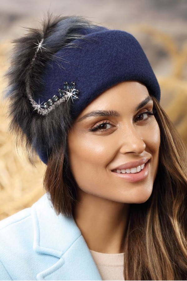 Caciula eleganta de dama WL11328 are bordura lata si este accesorizata cu pufi din blanita naturala care atrag admiratia celor din jur. In completarea decorului este o bogata aplicatie de strasuri stralucitoare si cristale asortate. Modelul este usor de integrat la tinutele casual cu accente elegante, dar si in garderoba clasica. Aduce sarm si eleganta celei ce o poarta si contribuie la intregirea garderobelor creionate in jurul bunului gust.