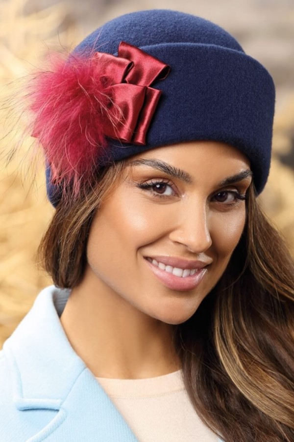 Caciula eleganta de dama WL11333 este un model sofisticat si versatil care intregeste garderoba din sezonul rece. Cucereste prin bordura lata care dispune de accesorizare contrastanta cu fundite satinate si pufi din blanita naturala. Este o piesa distinsa care pune in valoare frumusetea, feminitatea si iti permite sa fii cocheta in orice moment.