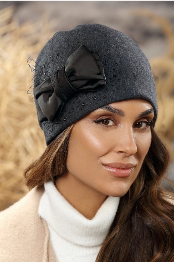 Caciula eleganta de dama WL11432 este accesorizata cu voaleta, strasuri si fundita stilizata ce imprima o nota pretioasa. Piesa prezinta mici pliuri decorative prinse spre spate si ofera stare de bine in timpul purtarii. Stilul elegant completat cu elementele sofisticate transforma aceasta caciula intr-un accesoriu perfect in sezonul rece pentru doamnele care apreciaza stilul chic, fara a epata.