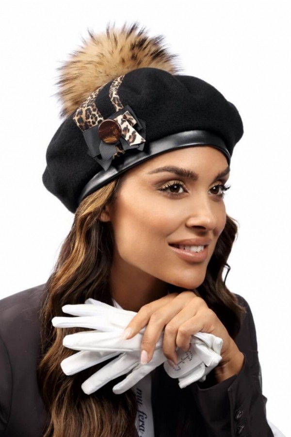 Caciula de dama stil bereta cu pompon din blanita.