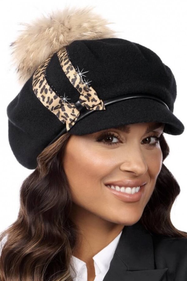 Caciula de dama stil bereta cu cozoroc si pompon.