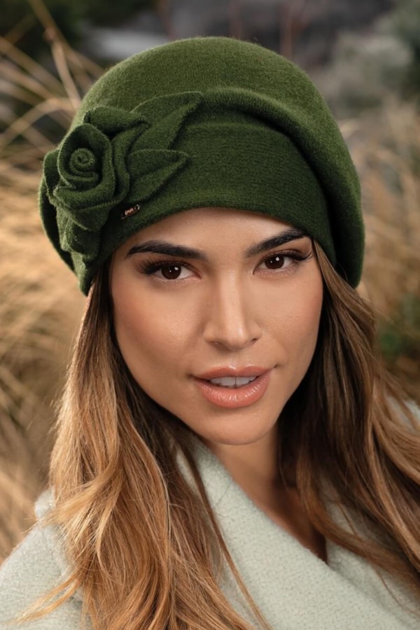 Decoratiunea integrata in lateral sub forma unui trandafir cu frunze are aspect natural si completeaza perfect bereta. Sub acest ornament este cusuta o placuta discreta cu sigla Willi. La spate este prevazuta cu o mica banda elastica mascata in bordura ce permite beretei sa se fixeze perfect pe cap. Caciula de dama tip bereta WL11639 are atat rolul de a proteja capul in zilele cu temperaturi scazute cat si de a adauga farmec tinutelor vestimentare de zi cu zi.