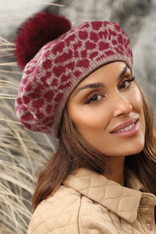 Caciula de dama tip bereta cu pompon din blanita WL11662 este o piesa cocheta, perfecta pentru a completa orice tinuta de iarna. Realizata din lana pura merinos, aduce un plus de caldura si confort in timpul sezonului rece. Materialul este cunoscut pentru caracteristicile superioare si are certificare Woolmark, garantand astfel calitatea fibrelor. Tricotul cu animal print adauga un plus de stil si personalitate.