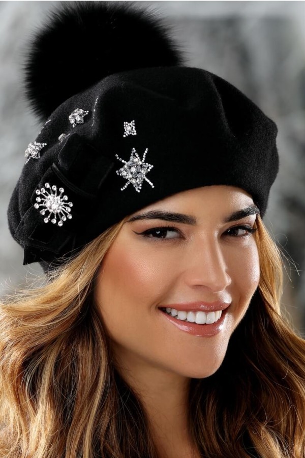 Accesorizarea fundita stilizata si brose cu strasuri si cristale este un alt element cheie care adauga un strop de modernitate si stralucire. Aceste detalii rafinate transforma caciula de dama tip bereta cu pompon din blanita WL11687 intr-un accesoriu vibrant, care poate fi usor combinat cu o multitudine de tinute si stiluri. Indiferent daca va indreptati spre o intalnire de afaceri sau pentru o iesire casual, este alegerea perfecta.