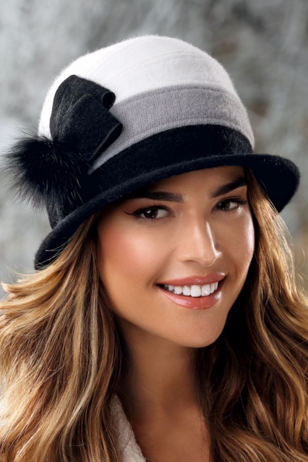 Designul este cu adevarat exceptional si impresionant. Printr-un joc subtil de culori si forme, modelul prezinta un bor mic, care accentueaza zona ochilor si iti subliniaza trasaturile faciale. Calota se distinge prin asocierea a trei culori, creand un contrast vizual placut, care adauga o nota de stil si unicitate oricarei tinute. In plus, un detaliu care distinge caciula de dama stil palarie WL11575 este fundita stilizata din lateral, care ii confera un aspect feminin si cochet. Completata de un puf din blanita naturala, fundita adauga un plus de stil. Cu aceasta piesa versatila in garderoba ta, vei putea sa adaugi cu usurinta un strop de eleganta oricarei tinute, fie ea casual sau sofisticata.
