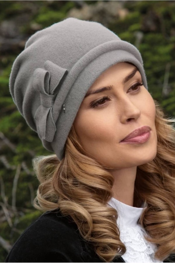 Caciula de dama WL10221 este un accesoriu aparte, cu aspect proaspat si tineresc. Se remarca prin croiala moderna, pliul decorativ orizontal si fundita aplicata in lateral. Prezinta pliuri largi prinse la ceafa care o fac sa para usor lasata pe spate. Este confectionata din tricot din lana pura merinos certificata Woolmark ce nu creeaza disconfort la purtare. Caciula WL10221 este conceputa pentru femeile ce adopta un stil vestimentar casual si vor sa-si completeze tinuta cu un accesoriu practic si comod ce va tine frigul la distanta.