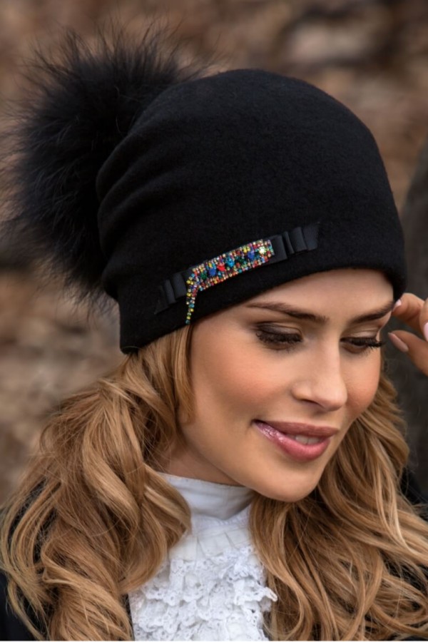 Caciula de dama cu pompon din blanita WL10422 atrage prin design-ul modern si elegant, fiind extrem de practica si comoda. Este o piesa cu aer tineresc ce aduce o nota sofisticata tinutelor de zi cu zi din sezonul rece. Pune in valoare trasaturile feminine si contribuie la definirea stilului. Datorita caracteristicilor deosebite si a accesorizarii cu bun-gust, poate fi considerata o achizitie cu versatilitate ridicata. Caciula este confectionata din tricot obtinut din lana merinos si are certificare de calitate Woolmark. Tuseul moale al materialului face sa fie placuta la purtare, fara a crea disconfort. Este captusita cu polar (fleece) ce sporeste starea de bine in anotimpul rece. Are croi simplu si ia forma capului cu lejeritate. Accesorizarea deosebita o transforma intr-o piesa exceptionala, sofisticata. Pomponul detasabil din blanita naturala si banda cu strasuri multicolore sunt elementele care scot din anonimat aceasta caciula extrem de apreciata. Caciula de dama cu pompon din blanita WL10422 este perfecta pentru zilele cu temperaturi scazute, protejandu-va capul de frig si adaugand o tenta moderna tinutelor casual.