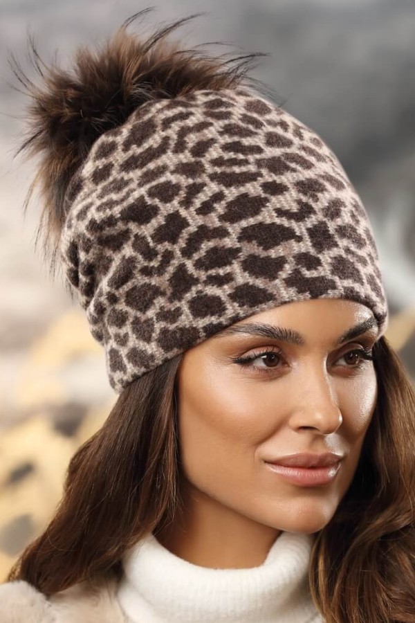 Caciula de dama cu pompon din blanita WL11676 este o alegere perfecta pentru doamnele care doresc sa fie la moda in sezonul de iarna si sa se bucure de confortul necesar in zilele reci. Este realizata din tricot de lana merinos cu certificare Woolmark, ceea ce garanteaza calitatea superioara. Tricotul cu animal print confera acestui accesoriu un aer jucaus si plin de personalitate, fiind un element perfect pentru a-ti completa garderoba in sezonul rece.