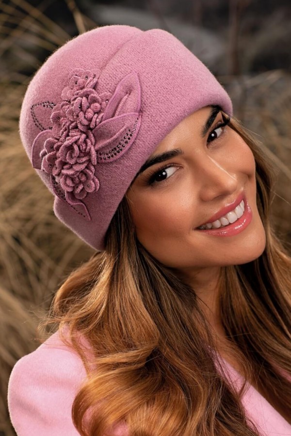 Designul este unul chic, creat pentru a accentua frumusetea si a evidentia trasaturile faciale. Se remarca bordura lata asimetrica ce adauga volum in partea inferioara. In lateral este imbogatita cu elemente florale deosebite stilizate din tricot. Manunchiul de flori mici si frunze are aspect natural si este completat cu strasuri asortate ce irizeaza discret in lumina. Aceste detalii transforma caciula eleganta de dama WL11758 intr-o piesa cu personalitate care pune in valoare caracterele romantice.