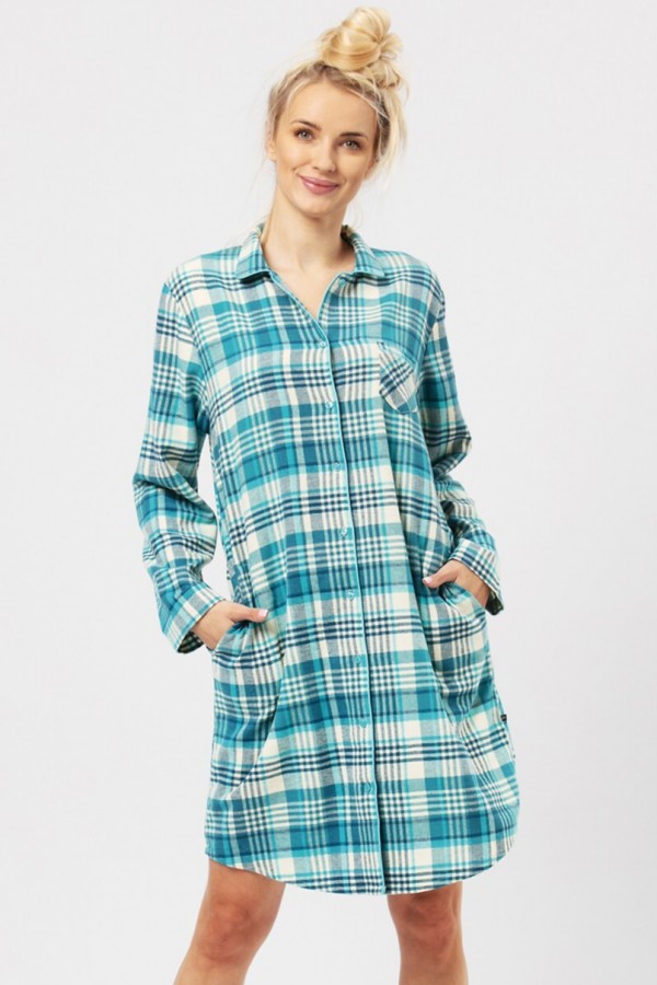 Camasa de noapte realizata din flanel din bumbac de inalta calitate, placut la atingere. Camasa prezinta model deosebit cu carouri, are maneca lunga, decolteu finisat cu guler, se inchide pe partea frontala cu nasturi, este prevazuta cu un buzunar mic in zona pieptului si cu buzunare laterale in zona soldurilor.