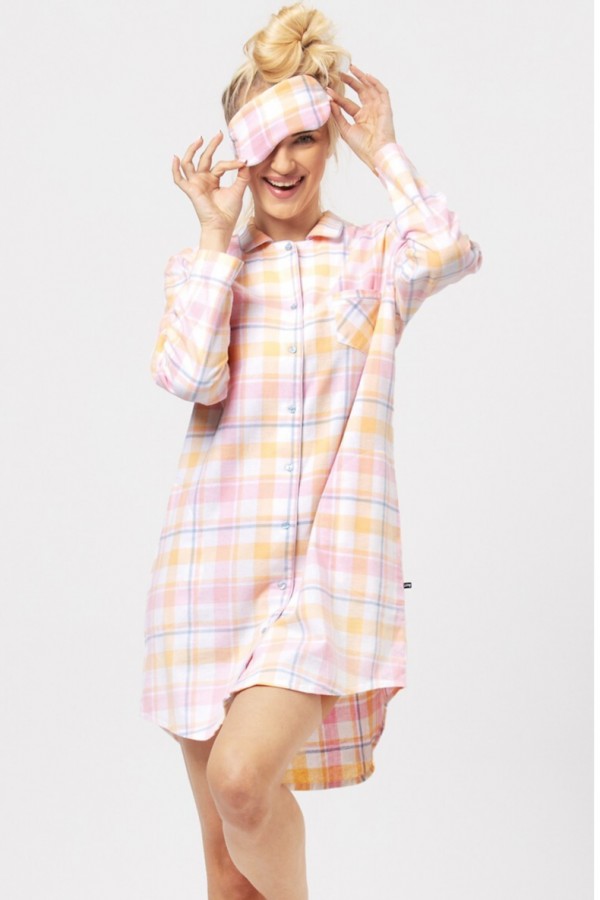 Camasa de noapte realizata din flanel din bumbac de inalta calitate, placut la atingere. Camasa este usor extinsa la spate, prezinta model deosebit cu carouri, are maneca lunga, decolteu finisat cu guler, se inchide pe partea frontala cu nasturi, este prevazuta cu un buzunar mic in zona pieptului si cu buzunare laterale in zona soldurilor.