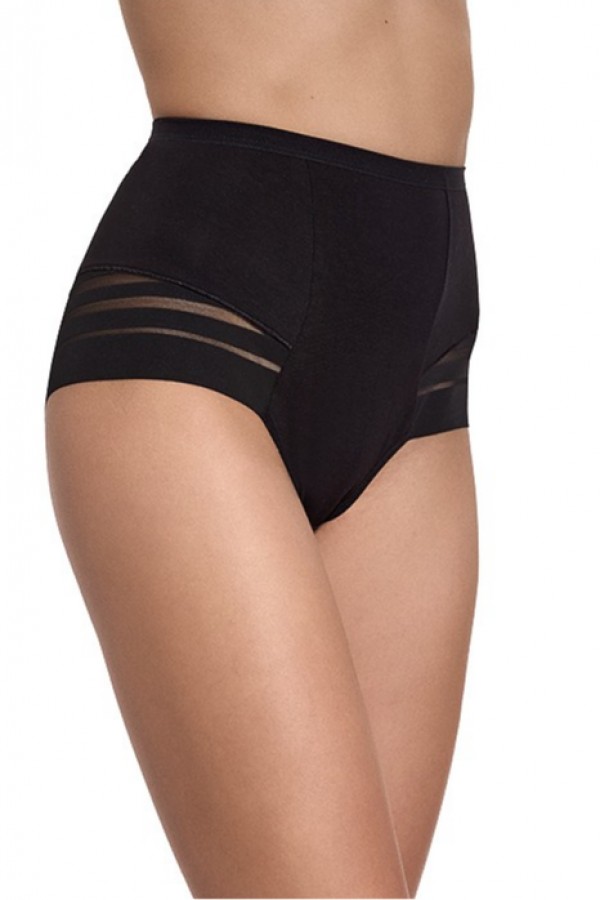 Chilot clasic cu talie inalta confectionat din bumbac de inalta calitate. Chilotul este infrumusetat in partile laterale si la spate cu insertii de tulle delicat ce creeaza senzatia unor dungi transparente.