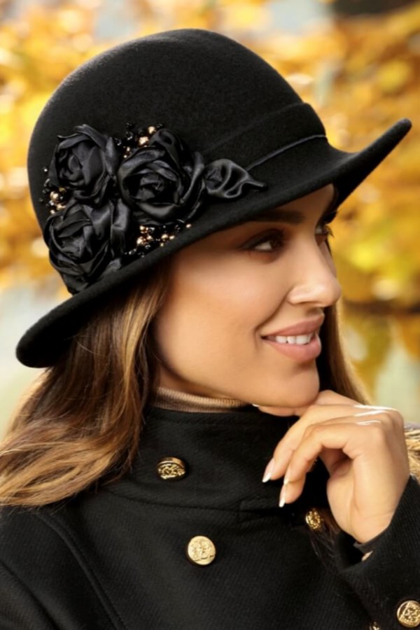 Palarie de dama cu o latime a borului de aproximativ 6 cm.