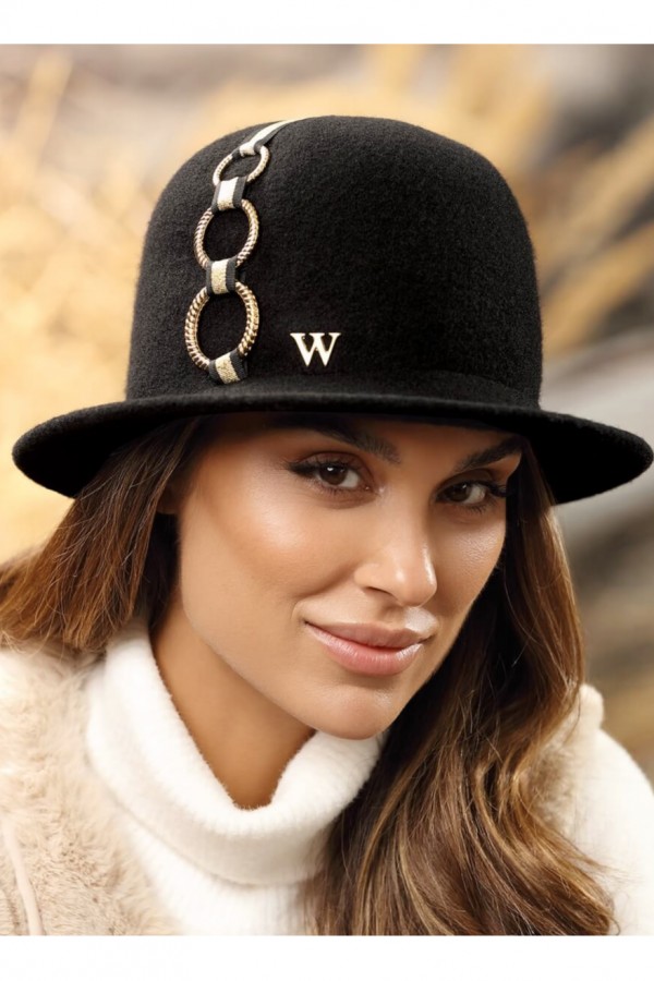 Palarie eleganta de dama WL11260 – cucereste prin accesorizarea cu capse aurii prinse de benzi decorative in doua culori. Initiala WILLI cu aspect metalizat completeaza perfect decorul. Este un model elegant, sarmant, care iti permite sa te simti frumoasa in orice situatie. Face parte din colectia premium si atrage privirile admirative ale celor din jur.
