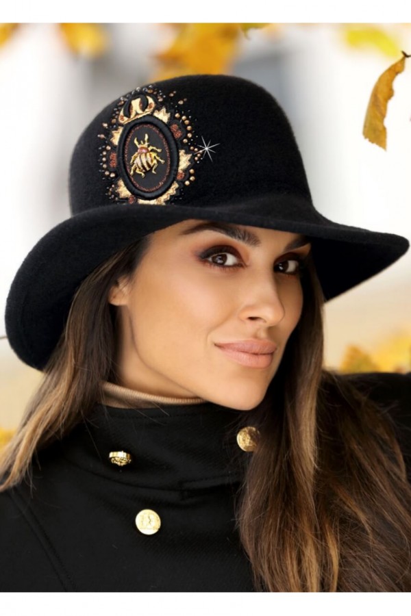 Palarie de dama cu o latime a borului de aproximativ 8 cm.