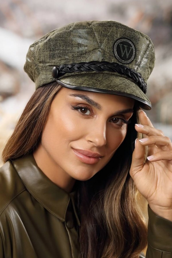 Sapca de dama WL11363 este un accesoriu vestimentar inedit care ofera rafinament garderobei pe care o desavarseste. In fata este accesorizata cu o emblema ce contine initiala WILLI si o impletitura satinata prinsa de o parte si de cealalta in nasturi decorativi. Marginea cozorocului este finisata cu piele ecologica. Modelul are la spate are o banda elastica care permite ajustarea intr-o mica masura.